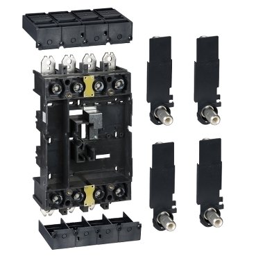 Комплект цоколя предназначен для преобразования выключателя SystemePact CCB в фиксированное или выкатное исполнение для обеспечения "горячей" замены неисправного аппарата или обеспечения видимого разрыва цепи при ремонтных работах. Комплект цоколя подключает/отключает силовую цепь автомата