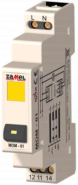 Zamel Кнопка с желтым индикатором 16А IP20 на DIN рейку от производителя Zamel. Артикул производителя MOM-01-30.