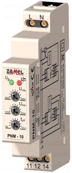 Zamel Реле напряжения 1Ф 10А рег. 170/290VAC (Umin/Umax) IP20 на DIN рейку от производителя Zamel. Артикул производителя PNM-10.