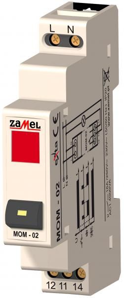 Zamel Выключатель кнопочный с красным индикатором 16А IP20 на DIN рейку от производителя Zamel. Артикул производителя MOM-02-10.