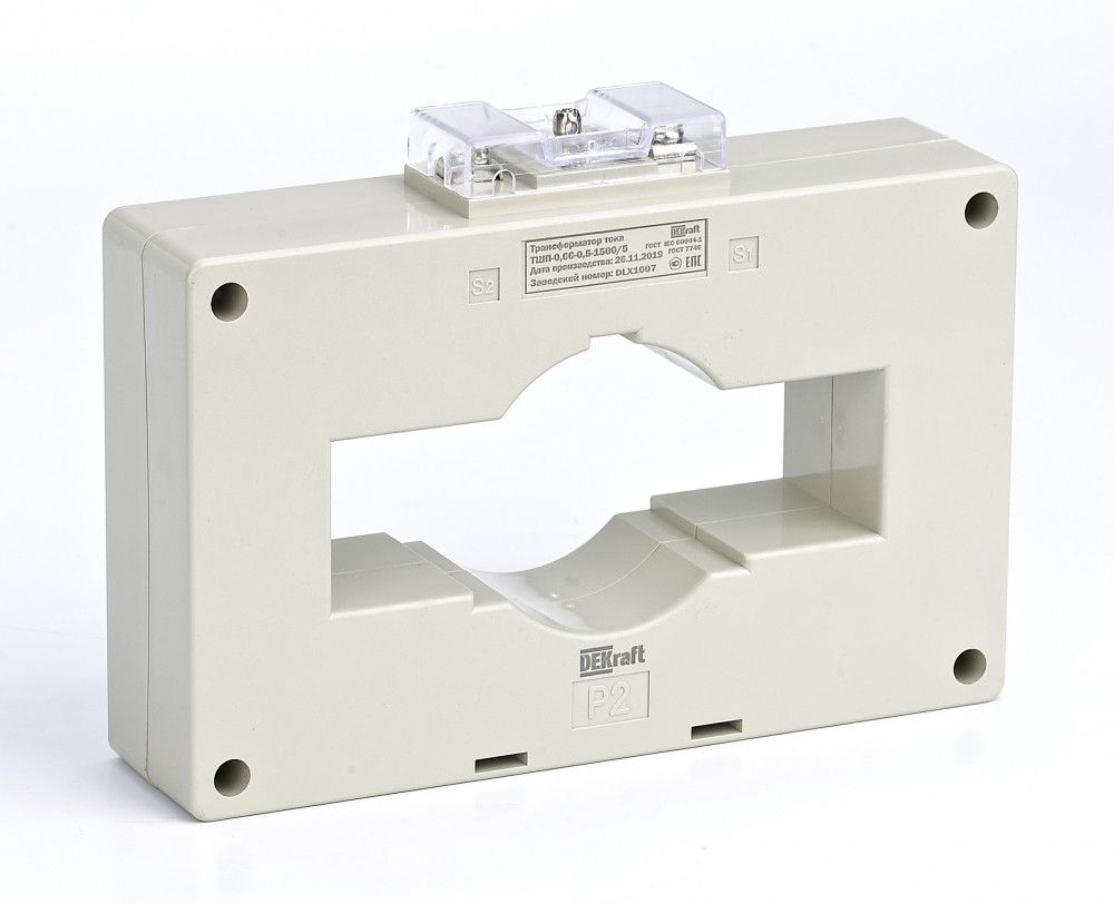 Трансформатор тока ТШП-0,66 Dekraft; класс точности 0,5S; ном. напряжение 0,66 кВ; коэфф. трансформации 1500/5; ном. вторичная нагрузка 15 ВА; диаметр 100 мм; размеры шины 100х30 мм и 60х40 мм. Трансформаторы тока ТШП-0,66 предназначены для контроля и передачи сигналов измерительной информации различным приборам в электрических цепях переменного тока частотой 50 Гц. Огнестойкий материал корпуса, защита от несанкционированного доступа, высокая точность измерений, высокие метрологические характеристики, малые потери мощности и стабильная работа устройства обеспечены.
