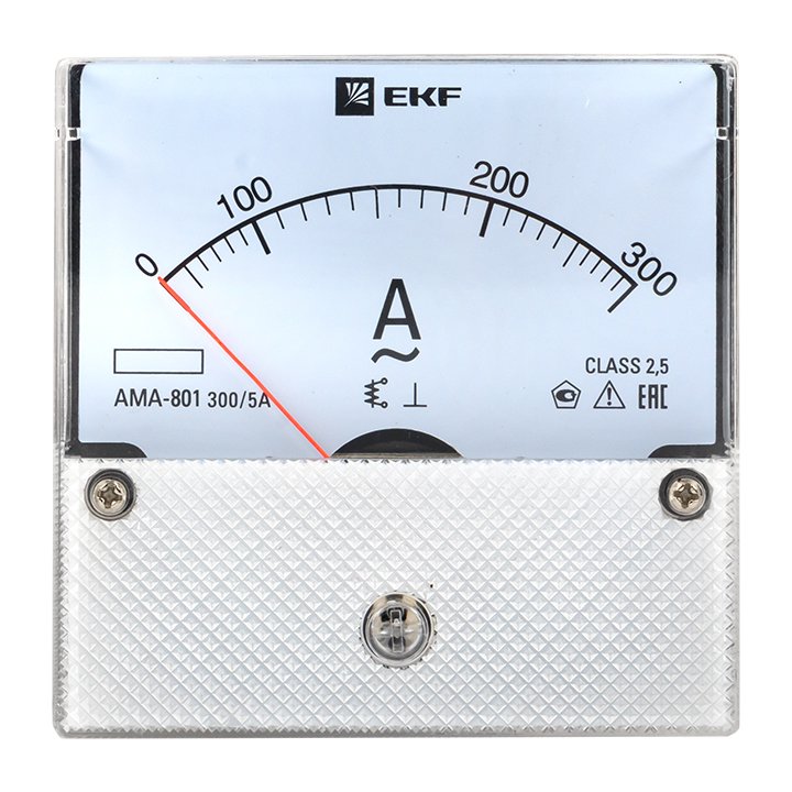 EKF PROxima Амперметр AMA-801 аналоговый на панель (80х80) круглый вырез 300А трансф. подкл., арт ama-801-300