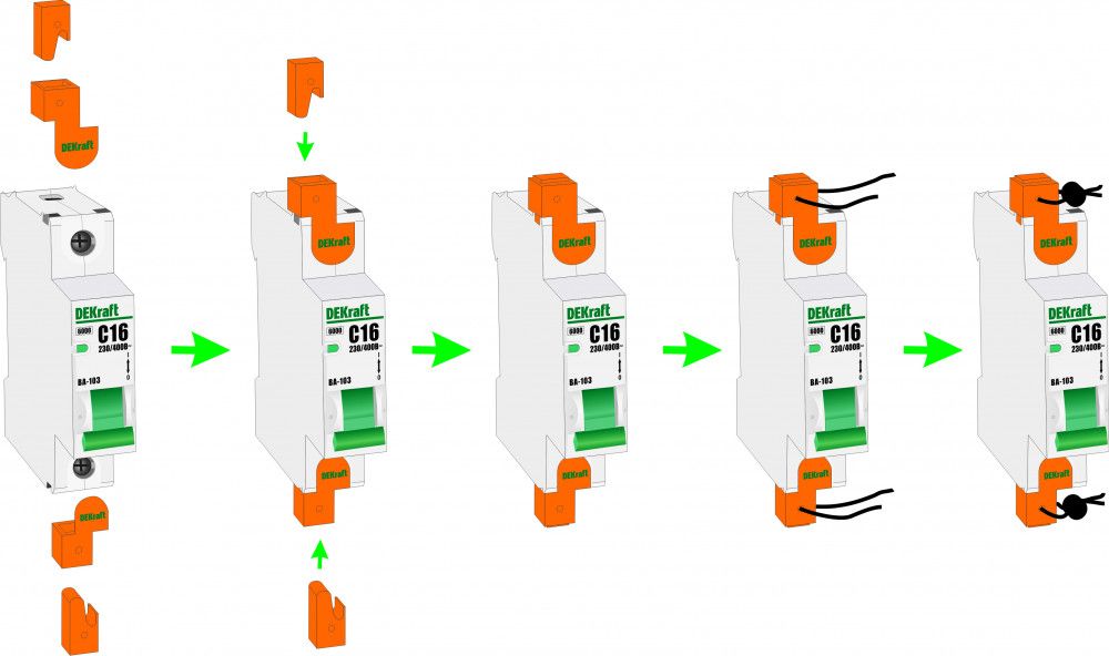 Заглушки клеммные КЗ-103 для автоматического выключателя серии ВА-103 DEKraft; предназначены для блокировки и пломбирования клемм выключателей серии ВА-103; материал and ndash; пластик; комплект and ndash; 2 шт. Клеммные заглушки обеспечивают защиту от хищения электроэнергии и от несанкционированного доступа к клеммам автоматического выключателя, а также защиту от случайного прикосновения к токоведущим частям аппарата.
