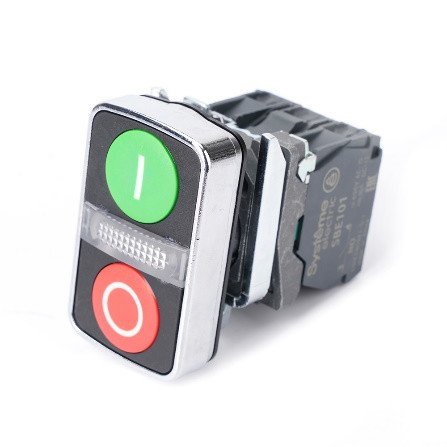 Кнопка серии SB4 двойная в сборе, модульная, для монтажа в отверстия диаметром 22 мм, зеленая "I" + сигнальная лампа + красная "O", в металлическом корпусе. Напряжение питания блока подсветки - 230В АС. Количество контактов: 1НО+1НЗ. Устройства управления и сигнализации SystemeSig находят широкое применение в технологическом оборудовании и машинах, шкафах распределения и управления, промышленных предприятиях, объектах инфраструктуры, гражданском строительстве.