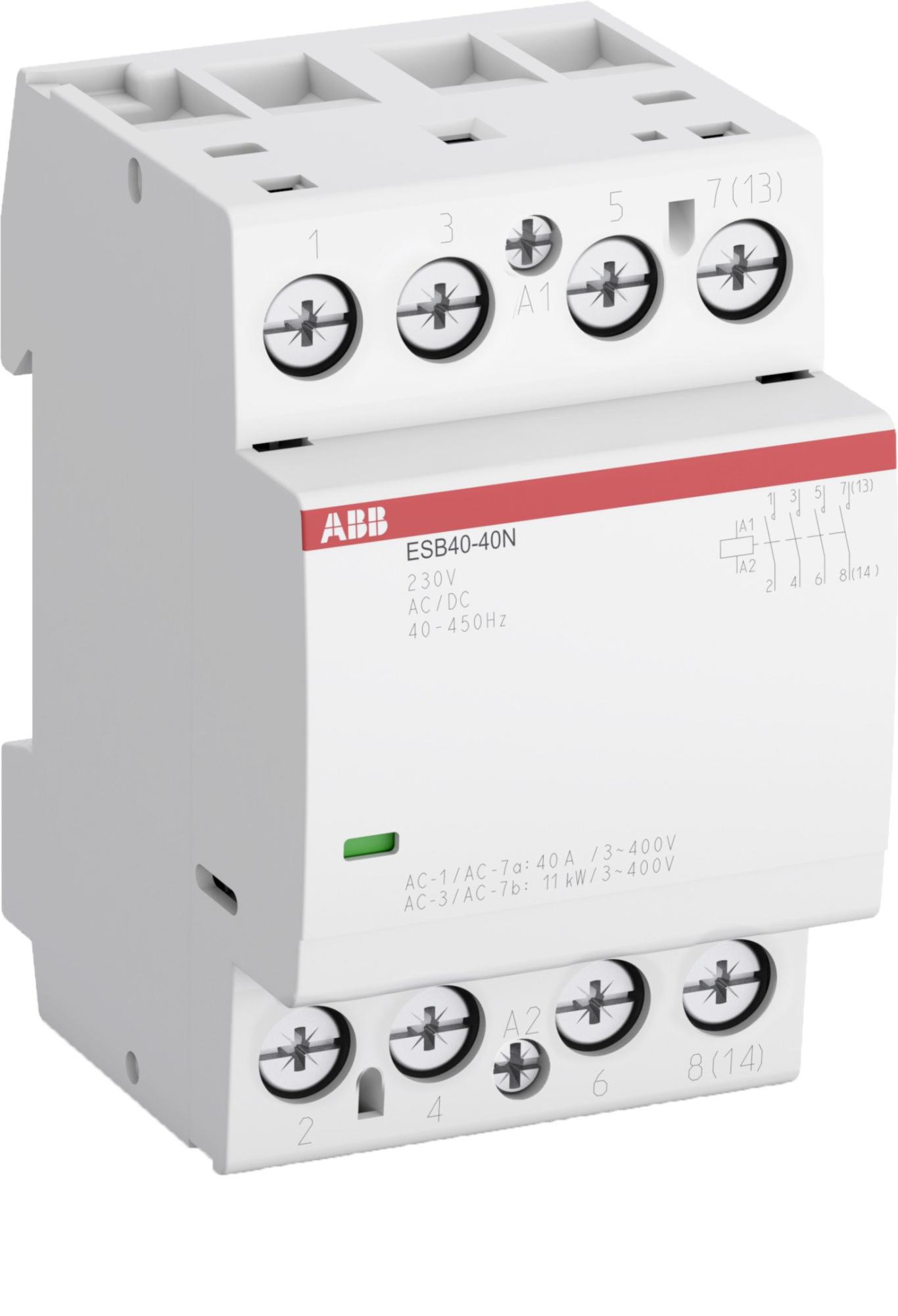 Модульные контакторы серии ESB..N предназначены для управления однофазными и трёхфазными нагрузками и могут управляться как переменным, так и постоянным током. Контакторы предназначены для применения как в жилом сегменте, так и в промышленности. Контакторы серии ESB..N имеют следующие преимущества: Бесшумная работа, низкое потребление электроэнергии и встроенная защита от перенапряжений. Существуют версии контакторов с различными комбинациями главных контактов, а также ряд аксессуаров.