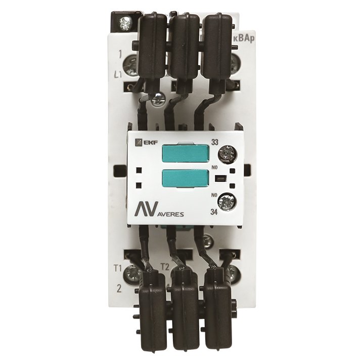 Контактор для конденсатора КМЭК AVERES - это специализированный контактор двухступенчатого включения для коммутации конденсаторов в установках компенсации реактивной мощности (УКРМ). Контакторы КМЭК EKF AVERES состоят из корпуса, закрепленных в нем двух рядов неподвижных контактов, подвижных контактов, которые закреплены в подвижной части магнитной системы. На первом ряду контактов с коммутированы зарядные резисторы. Неподвижная часть магнитной системы закреплена жестко в корпусе КМЭК. Пружина препятствует смыканию контактов. При подаче напряжения на катушку управления в магнитной системе контактора возникает магнитное поле, которое, преодолевая сопротивление пружины, смыкает магнитную систему и замыкает сначала верхнюю группу контактов и через 0,1-0,2 секунды вторую, силовую группу контактов. При этом пусковой ток конденсаторов гаситься на резисторах. При отключении напряжения с катушки управления пружина размыкает контакты. Возможна коммутация алюминиевым и медным проводом.