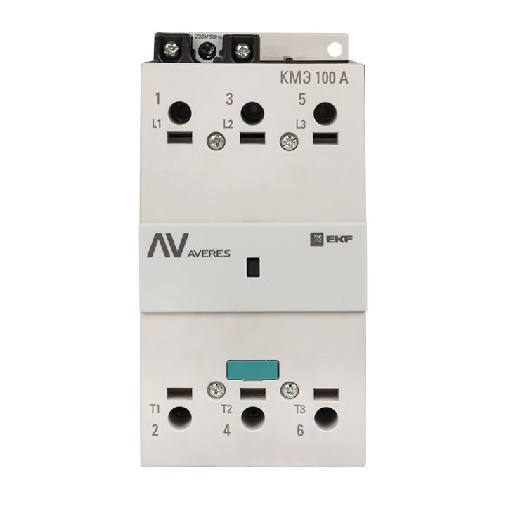 Контакторы КМЭ EKF AVERES состоят из корпуса, закрепленных в нем неподвижных контактов, подвижных контактов, которые закреплены в подвижной части магнитной системы. Неподвижная часть магнитной системы закреплена жестко в корпусе КМЭ. Пружина препятствует смыканию контактов. При подаче напряжения на катушку управления в магнитной системе контактора возникает магнитное поле, которое, преодолевая сопротивление пружины, смыкает магнитную систему и замыкает контакты. При отключении напряжения с катушки управления пружина размыкает контакты. Возможна коммутация алюминиевым и медным проводом.