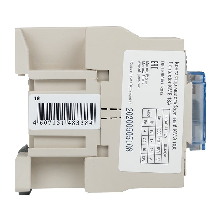 Контакторы КМЭ EKF PROxima состоят из корпуса, закрепленных в нем неподвижных контактов, подвижных контактов, которые закреплены в подвижной части магнитной системы. Неподвижная часть магнитной системы закреплена жестко в корпусе КМЭ. Пружина препятствует смыканию контактов. При подаче напряжения на катушку управления в магнитной системе контактора возникает магнитное поле, которое, преодолевая сопротивление пружины, смыкает магнитную систему и замыкает контакты. При отключении напряжения с катушки управления пружина размыкает контакты. Возможна коммутация алюминиевыми медным проводом.