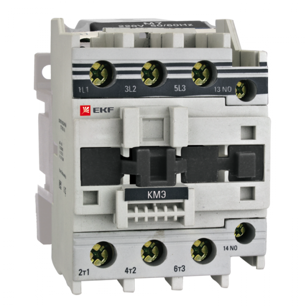 Контакторы КМЭ EKF PROxima состоят из корпуса, закрепленных в нем неподвижных контактов, подвижных контактов, которые закреплены в подвижной части магнитной системы. Неподвижная часть магнитной системы закреплена жестко в корпусе КМЭ. Пружина препятствует смыканию контактов. При подаче напряжения на катушку управления в магнитной системе контактора возникает магнитное поле, которое, преодолевая сопротивление пружины, смыкает магнитную систему и замыкает контакты. При отключении напряжения с катушки управления пружина размыкает контакты. Возможна коммутация алюминиевыми медным проводом.