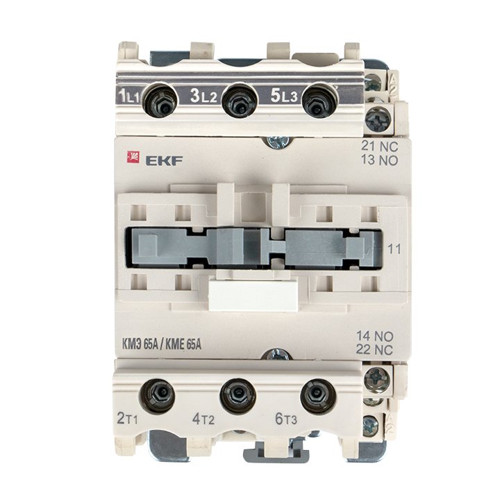 Контакторы КМЭ EKF PROxima состоят из корпуса, закрепленных в нем неподвижных контактов, подвижных контактов, которые закреплены в подвижной части магнитной системы. Неподвижная часть магнитной системы закреплена жестко в корпусе КМЭ. Пружина препятствует смыканию контактов. При подаче напряжения на катушку управления в магнитной системе контактора возникает магнитное поле, которое, преодолевая сопротивление пружины, смыкает магнитную систему и замыкает контакты. При отключении напряжения с катушки управления пружина размыкает контакты. Возможна коммутация алюминиевыми медным проводом.