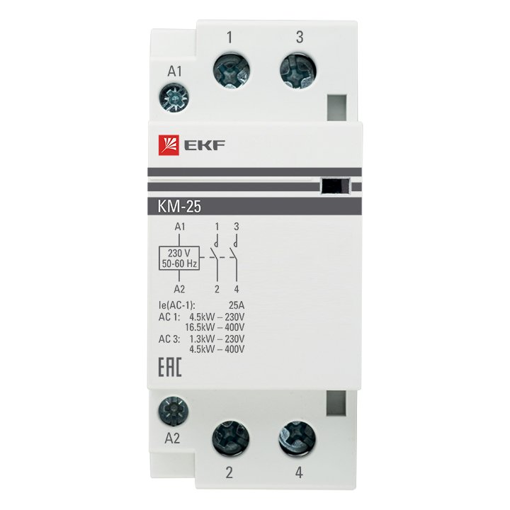 —EKF PROxima Контактор модульный КМ 25А 2NО (2 мод.), арт km-2-25-20