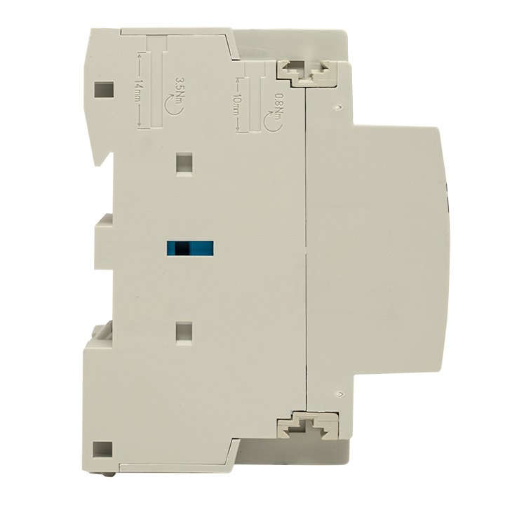 Модульные контакторы представляют из себя контактор в классическом корпусе модульного оборудования. Он состоит из неподвижных контактов, подвижных контактов, которые закреплены в подвижной части магнитной системы. Неподвижная часть магнитной системы закреплена жестко в корпусе КМ. Пружина препятствует смыканию контактов. При подаче напряжения на катушку управления в магнитной системе контактора возникает магнитное поле, которое, преодолевая сопротивление пружины, смыкает магнитную систему и замыкает контакты. При отключении напряжения с катушки управления пружина размыкает контакты. Возможна коммутация алюминиевым и медным проводом.