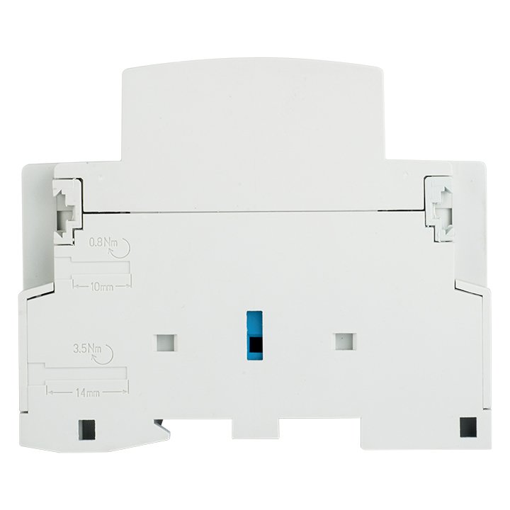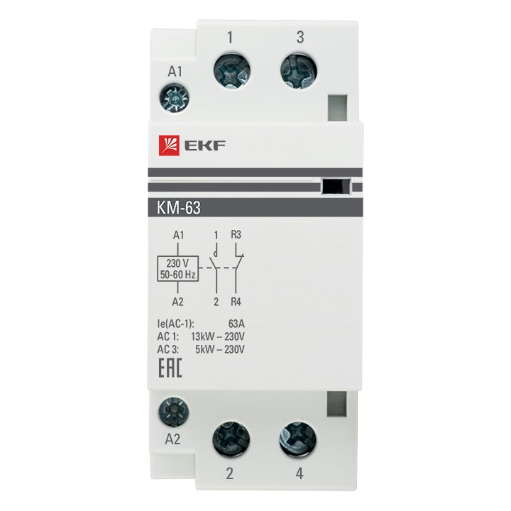 Модульные контакторы представляют из себя контактор в классическом корпусе модульного оборудования. Он состоит из неподвижных контактов, подвижных контактов, которые закреплены в подвижной части магнитной системы. Неподвижная часть магнитной системы закреплена жестко в корпусе КМ. Пружина препятствует смыканию контактов. При подаче напряжения на катушку управления в магнитной системе контактора возникает магнитное поле, которое, преодолевая сопротивление пружины, смыкает магнитную систему и замыкает контакты. При отключении напряжения с катушки управления пружина размыкает контакты. Возможна коммутация алюминиевым и медным проводом.