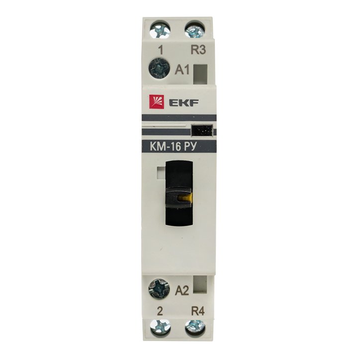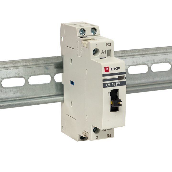 Модульные контакторы представляют из себя контактор в классическом корпусе модульного оборудования. Он состоит из неподвижных контактов, подвижных контактов, которые закреплены в подвижной части магнитной системы. Неподвижная часть магнитной системы закреплена жестко в корпусе КМ. Пружина препятствует смыканию контактов. При подаче напряжения на катушку управления в магнитной системе контактора возникает магнитное поле, которое, преодолевая сопротивление пружины, смыкает магнитную систему и замыкает контакты. При отключении напряжения с катушки управления пружина размыкает контакты. Возможна коммутация алюминиевым и медным проводом.