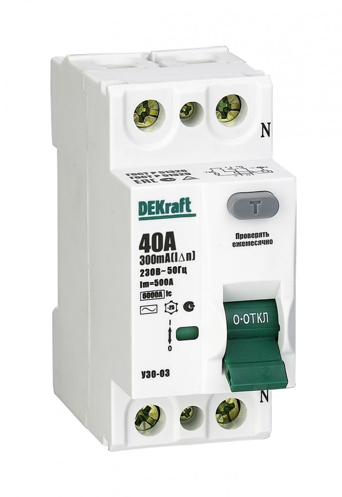 Выключатель дифференциального тока серии УЗО-03 DEKraft; 2P; номинальный ток 100 А; ном.дифф. ток 300 мА; электромеханический; тип дифференциального расцепителя - AC; ширина – 2 мод. х 18 мм; монтаж – на DIN-рейку. ВДТ устанавливаются в сетях напряжением до 400 В пер.тока. ВДТ применяются для защиты электроустановок от риска возникновения пожаров вследствие утечек тока. Конструкция устройств позволяет эксплуатировать их даже при низкой температуре.