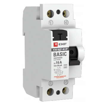 —EKF Basic ВДT-40 УЗО 2P 16А/10мА (AC) электронное, арт elcb-2-16-10e-sim
