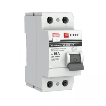 —EKF PROxima ВД-100 УЗО 2P 16А/30мА (A) электромеханическое, арт elcb-2-16-30-em-a-pro