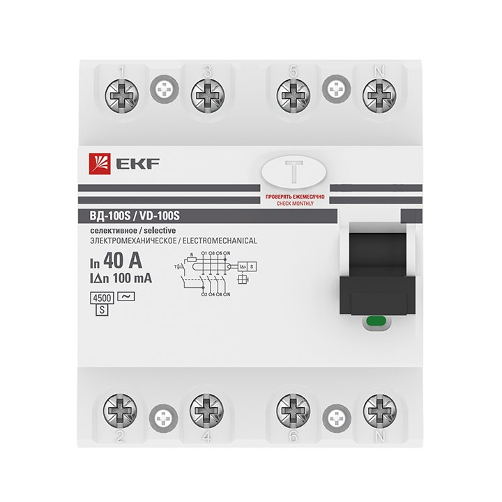 —EKF PROxima ВД-100 УЗО 4P 40А/100мА (S) электромеханическое, арт elcb-4-40-100S-em-pro