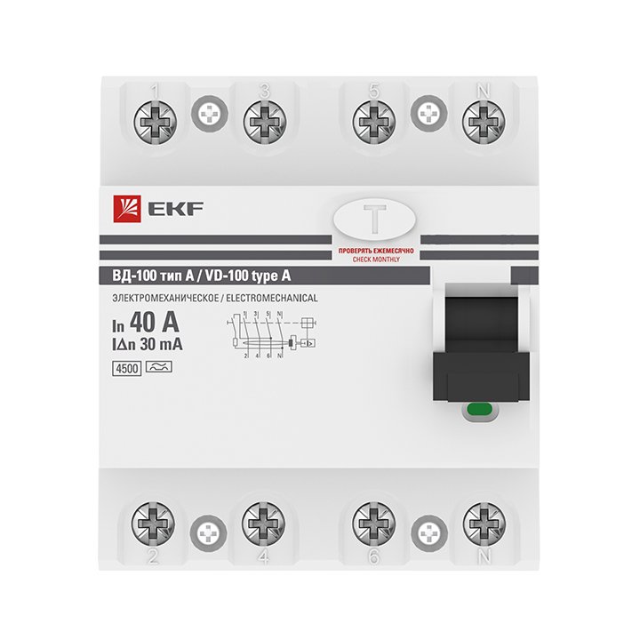 —EKF PROxima ВД-100 УЗО 4P 40А/30мА (A) электромеханическое, арт elcb-4-40-30-em-a-pro