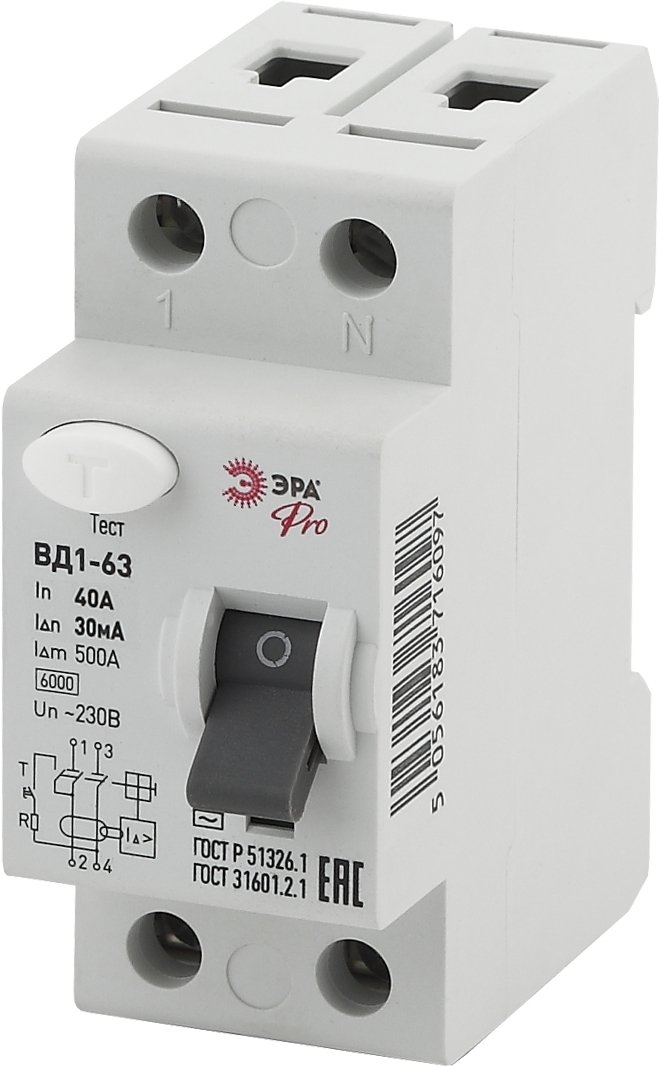 —ЭРА NO-902-25 Pro Устройство защитного отключения УЗО ВД1-63 1P+N 40А 30мА, арт Б0031874