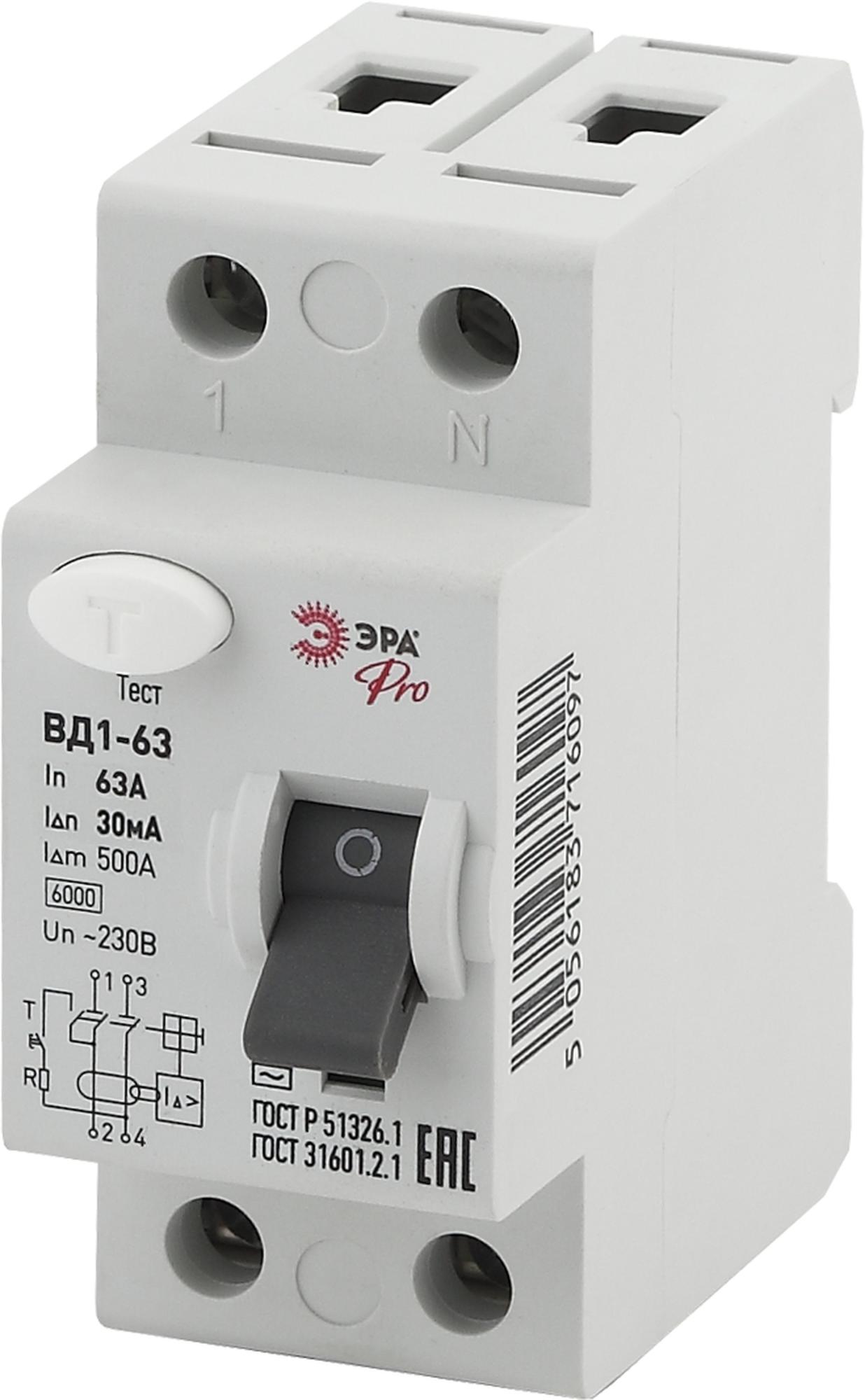 —ЭРА NO-902-33 Pro Устройство защитного отключения УЗО ВД1-63 1P+N 63А 30мА, арт Б0031879