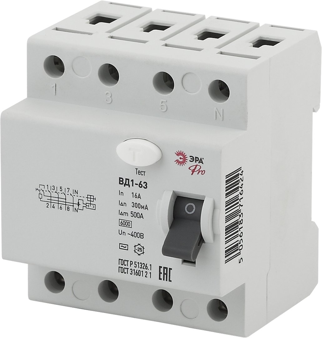 ЭРА NO-902-67 Pro Устройство защитного отключения УЗО ВД1-63 3P+N 16А 300мА