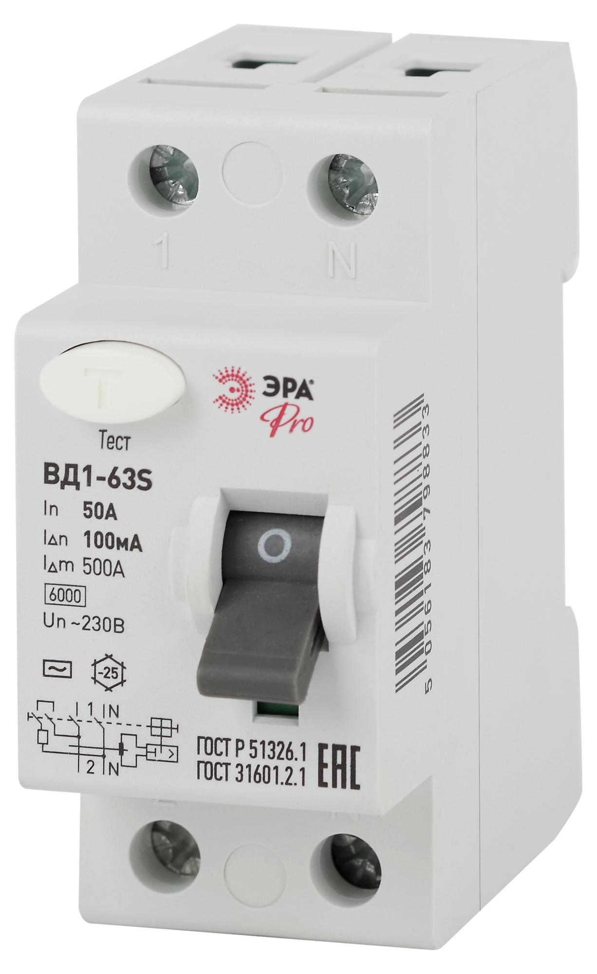 —ЭРА Pro Устройство защитного отключения NO-902-151 УЗО ВД1-63S 1P+N 50А 100мА, арт Б0036856