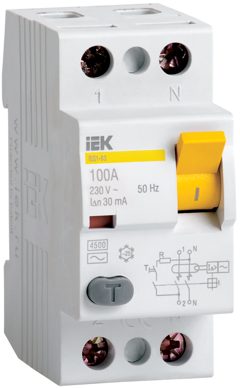 Дифференциальный выключатель ВД 1-63 тип А без встроенной защиты от сверхтоков реагирует не только на синусоидальные переменные дифференциальные токи, но и на пульсирующие постоянные дифференциальные токи. Источником пульсирующего тока являются, например, стиральные машины с регуляторами скорости, регулируемые источники света, телевизоры, видеомагнитофоны, персональные компьютеры и др. Дифференциальный выключатель ВД 1-63 тип А соответствует требованиям ГОСТ 50326 и ГОСТ 50807 как дифференциальный выключатель, "функционально не зависящий от источника питания". Дифференциальный выключатель ВД 1-63 тип А предназначен для защиты человека от поражения электрическим током при случайном непреднамеренном прикосновении к токоведущим частям электроустановок в сетях переменного тока напряжением 230/400 В и частотой 50 Гц. Дифференциальный выключатель ВД 1-63 тип А выпускается в 2-х и 4-х полюсном исполнении на номинальные токи 16А, 25А, 32А, 40А, 50А, 63А и номинальные отключающие дифференциальные токи 10мА, 30мА, 1