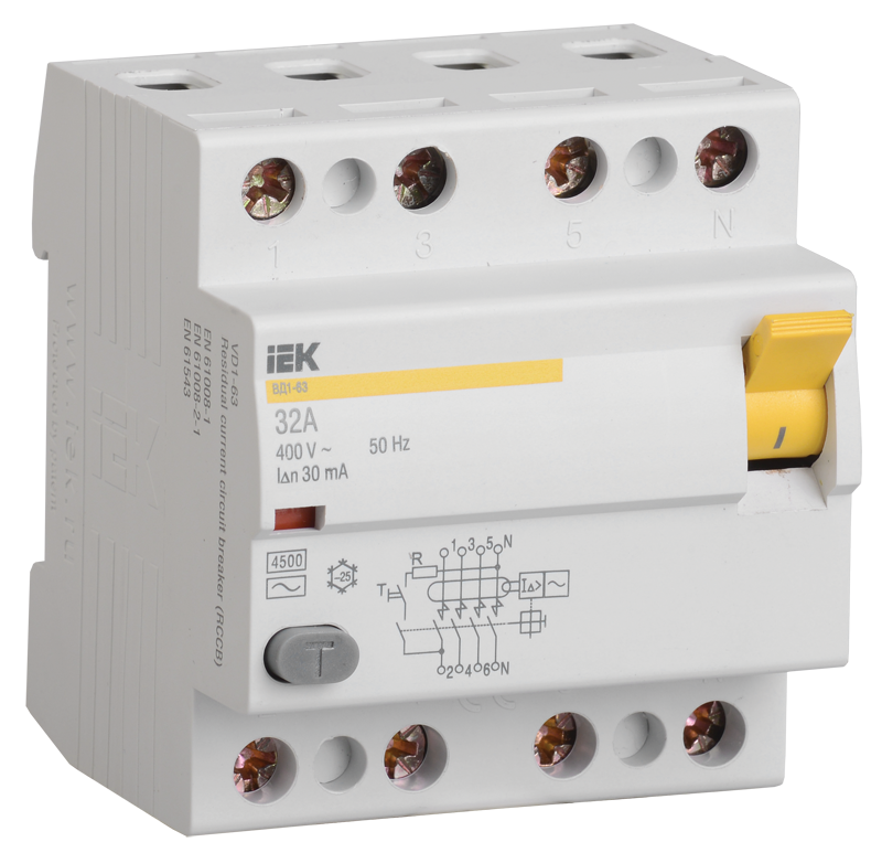 —IEK KARAT Выключатель дифференциальный УЗО ВД1-63 4Р 63А 100мА тип А, арт MDV11-4-063-100
