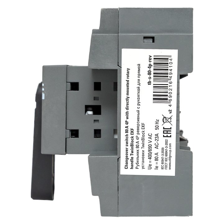 —EKF Рубильник 80A 4P реверсивный c рукояткой для прямой установки TwinBlock, арт tb-s-80-4p-rev