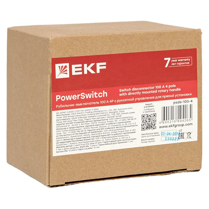 —EKF Рубильник-выключатель 100A 4P c рукояткой управления для прямой установки PowerSwitch, арт psds-100-4