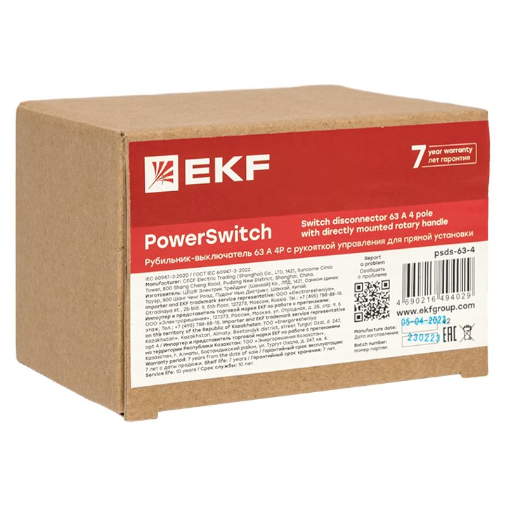 —EKF Рубильник-выключатель 63A 4P c рукояткой управления для прямой установки PowerSwitch, арт psds-63-4
