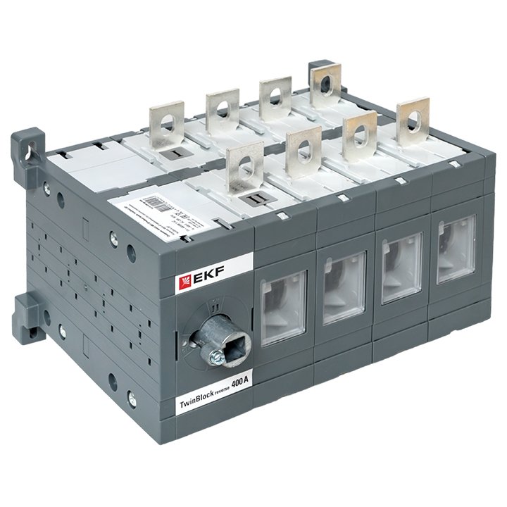 Рубильники серии TwinBlock предназначены для пропускания номинальных токов, включения и отключения электрических цепей номинальным напряжением до 690 В переменного тока частотой 50 и 60 Гц в устройствах распределения электрической энергии. Выключатели-разъединители серии TwinBlock (модели 40-800 А) имеют возможность подключения дополнительного четвертого полюса. Реверсивные рубильники серии TwinBlock предназначены для переключения нагрузки на резервную линию с разрывом питания (индикация положений на рубильнике I-0-II). Электрические характеристики реверсивных рубильников серии TwinBlock позволяют выполнять переключение под нагрузкой между двумя источниками питания, даже при токах с высокой индуктивной составляющей и пусковых токах двигателей.
