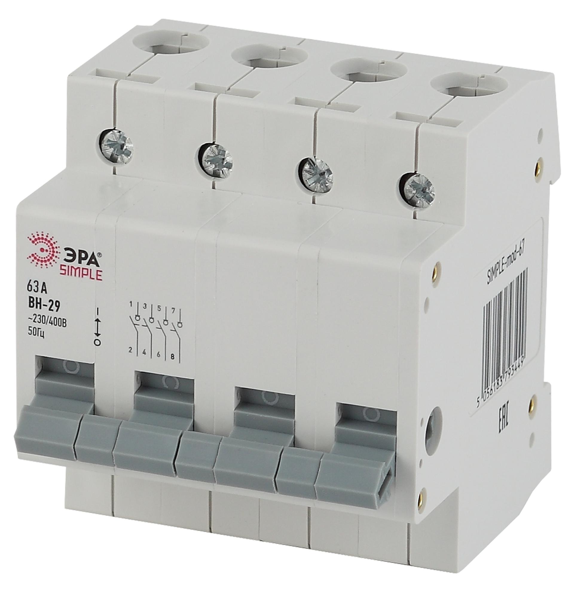 —ЭРА SIMPLE-mod-70 SIMPLE Выключатель нагрузки 4P 63А ВН-29, арт Б0039260