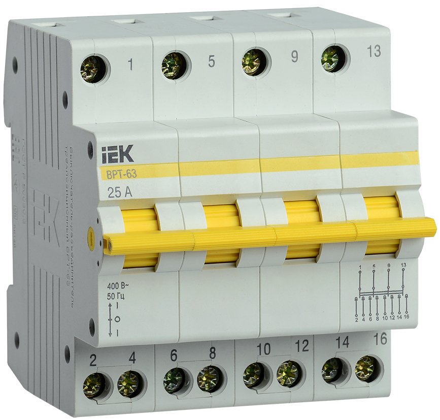 —IEK KARAT Выключатель-разъединитель трехпозиционный ВРТ-63 4P 25А, арт MPR10-4-025