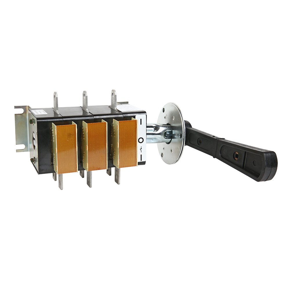 Выключатель-разъединитель 3 полюсный на номинальный ток 100 А, в котором установлена съемная рукоятка.