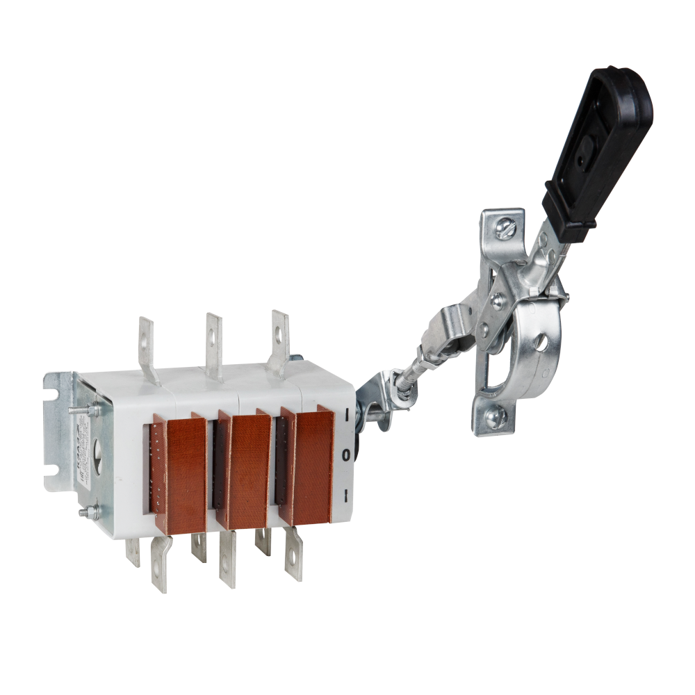 Выключатель-разъединитель 3 полюсный на номинальный ток 250 А, в котором установлена несъемная рукоятка.
