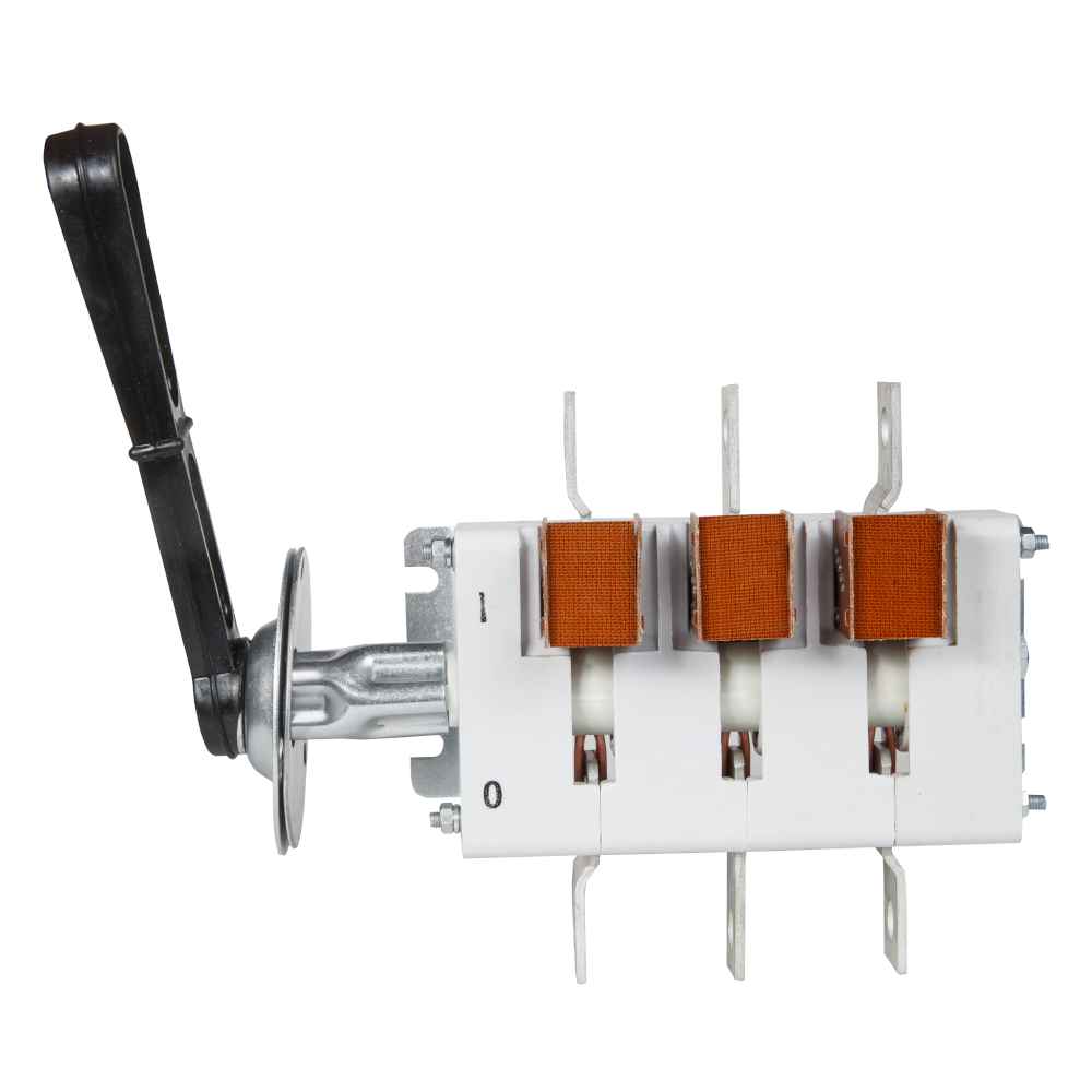 Выключатель-разъединитель 3 полюсный на номинальный ток 250 А, в котором установлена съемная рукоятка.