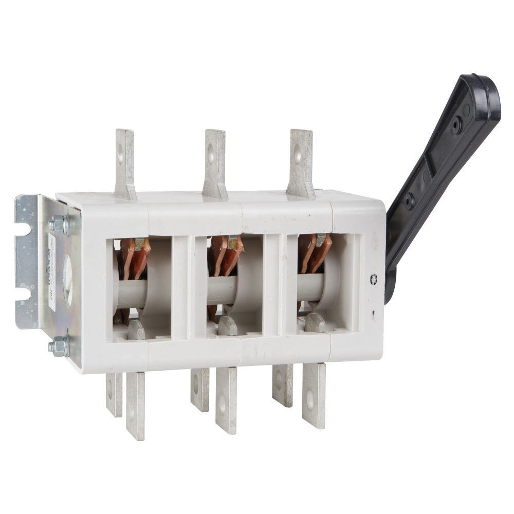 Выключатель-разъединитель 3 полюсный на номинальный ток 400 А, в котором установлена несъемная рукоятка.