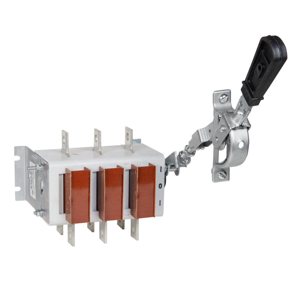 Выключатель-разъединитель 3 полюсный на номинальный ток 400 А, в котором установлена несъемная рукоятка.
