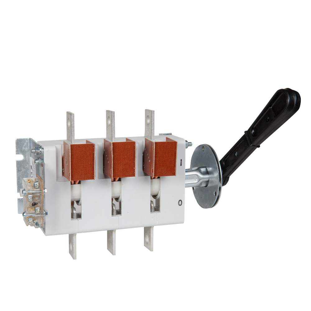 Выключатель-разъединитель 3 полюсный на номинальный ток 400 А, в котором установлена съемная рукоятка.