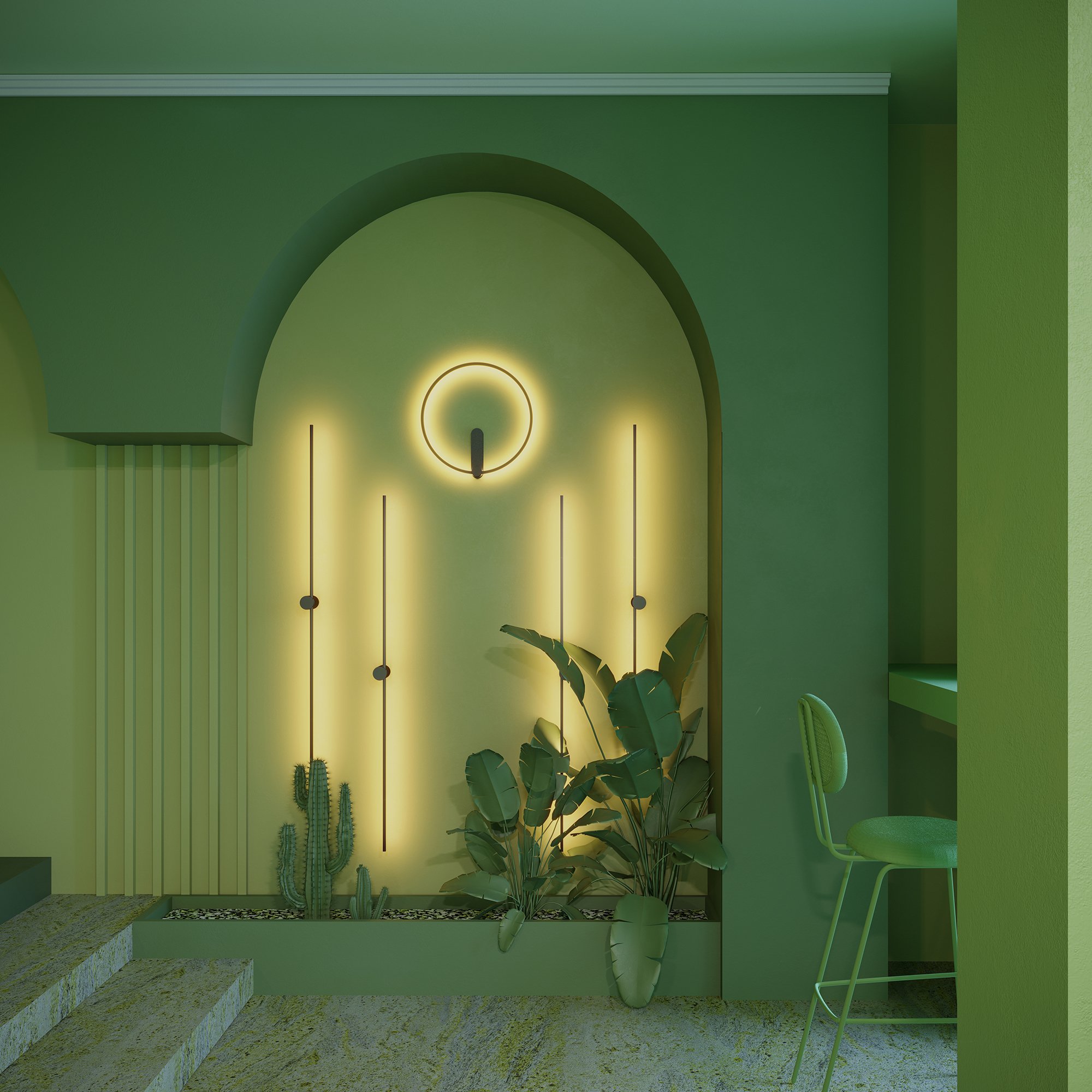 Декоративный настенный светильник. Мощность 13 Вт, св. поток 850 лм, 65 лм/Вт, теплый 3000K, CRI>80, угол 110°, напряжение питания 230 В. Черный фигурный корпус из алюминия, экран из поликарбоната, степень защиты IP20. Размер: диаметр 400 мм, размер основания: длина 178мм, ширина 43 мм. Монтаж накладной. Пульсация <0,5. Возможность поворота светоизлучателя на 350 градусов.