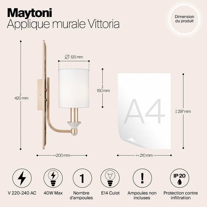 Настенный светильник (бра) H005WL-01BG Maytoni Vittoria. Немецкий бренд Maytoni хорошо известен европейским потребителям и завоевал особую популярность в России. Покупатели ценят в продукции бренда высокое качество, исключительную безопасность, использование современных экологичных материалов. Отдельно отмечают фирменный стиль Maytoni, в нем функциональность дополняется удобством пользования, а дизайн соответствует современным тенденциям.
