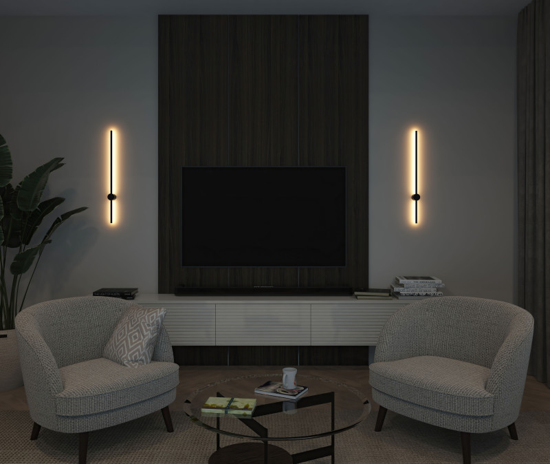 Бра Denkirs DK5012 BK — это стильный и функциональный элемент освещения, который подходит для современных интерьеров. Выполненное из черного алюминия, это бра обладает элегантным и лаконичным дизайном, который прекрасно впишется как в жилые, так и в коммерческие помещения. Мощность в 7 Вт обеспечивает мягкий и ровный свет с цветовой температурой 3000K, создавая уютную и теплую атмосферу в помещении.\nБра станет отличным вариантом для оформления гостиных, спален, коридоров и даже офисов. Благодаря защите IP20, оно подходит для установки в помещениях с нормальным уровнем влажности. Длина бра 800 мм позволяет осветить значительную площадь стены, придавая интерьеру утонченность и современность.