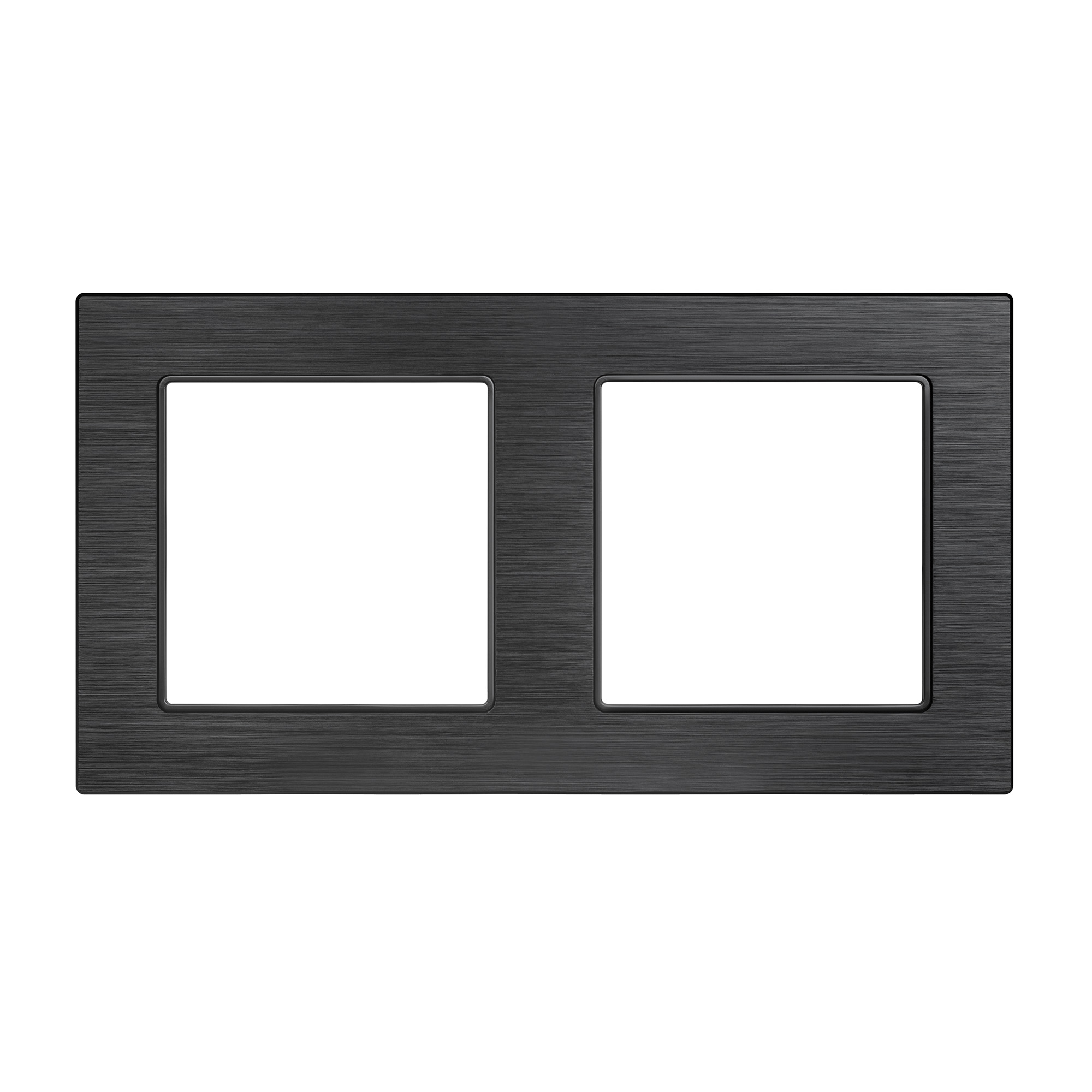 Рамка алюминиевая на 2 пост, под встраиваемый механизм (квадрат). Цвет - черный. Ориентации монтажа - горизонтальная.