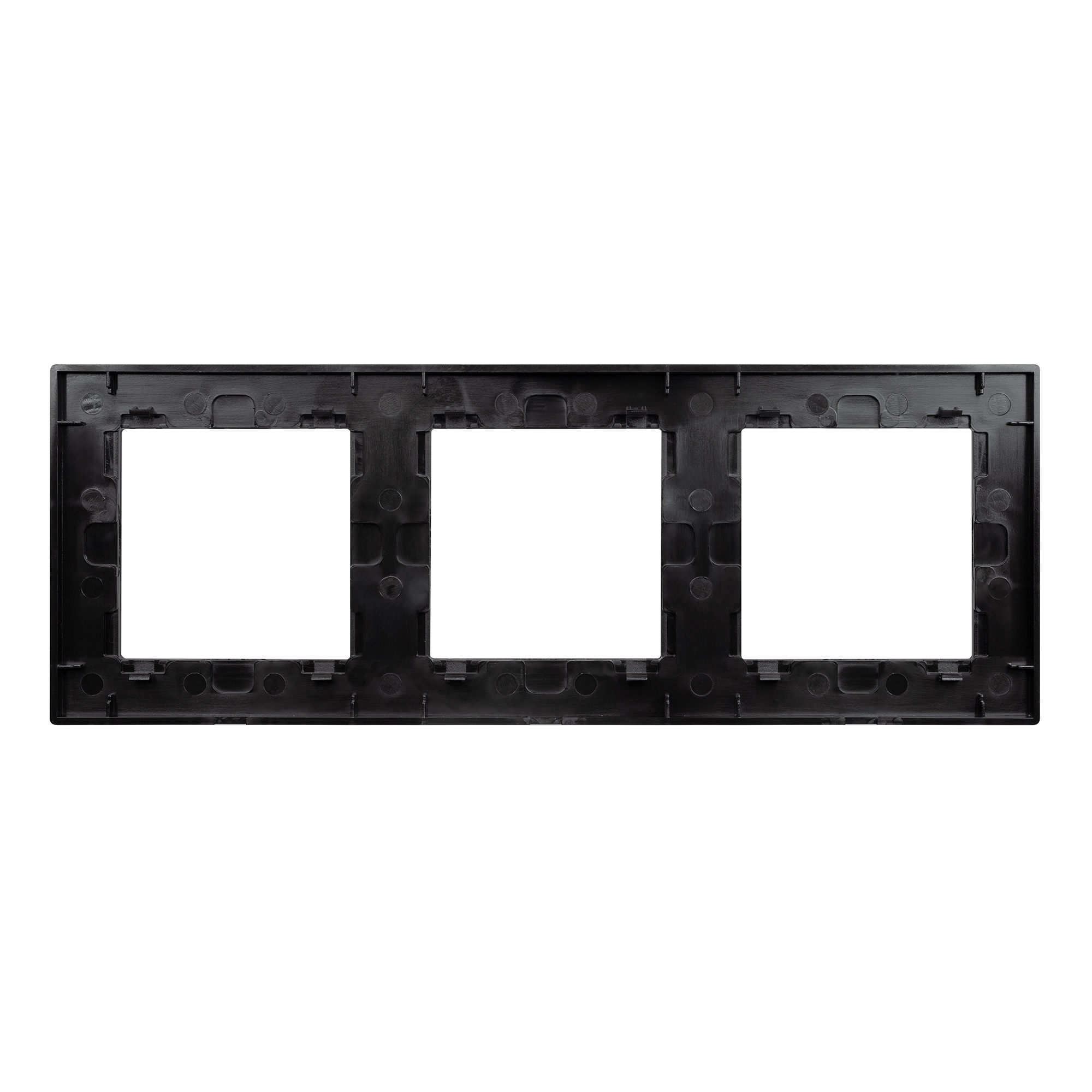 Рамка алюминиевая на 3 пост, под встраиваемый механизм (квадрат). Цвет - черный. Ориентации монтажа - горизонтальная.