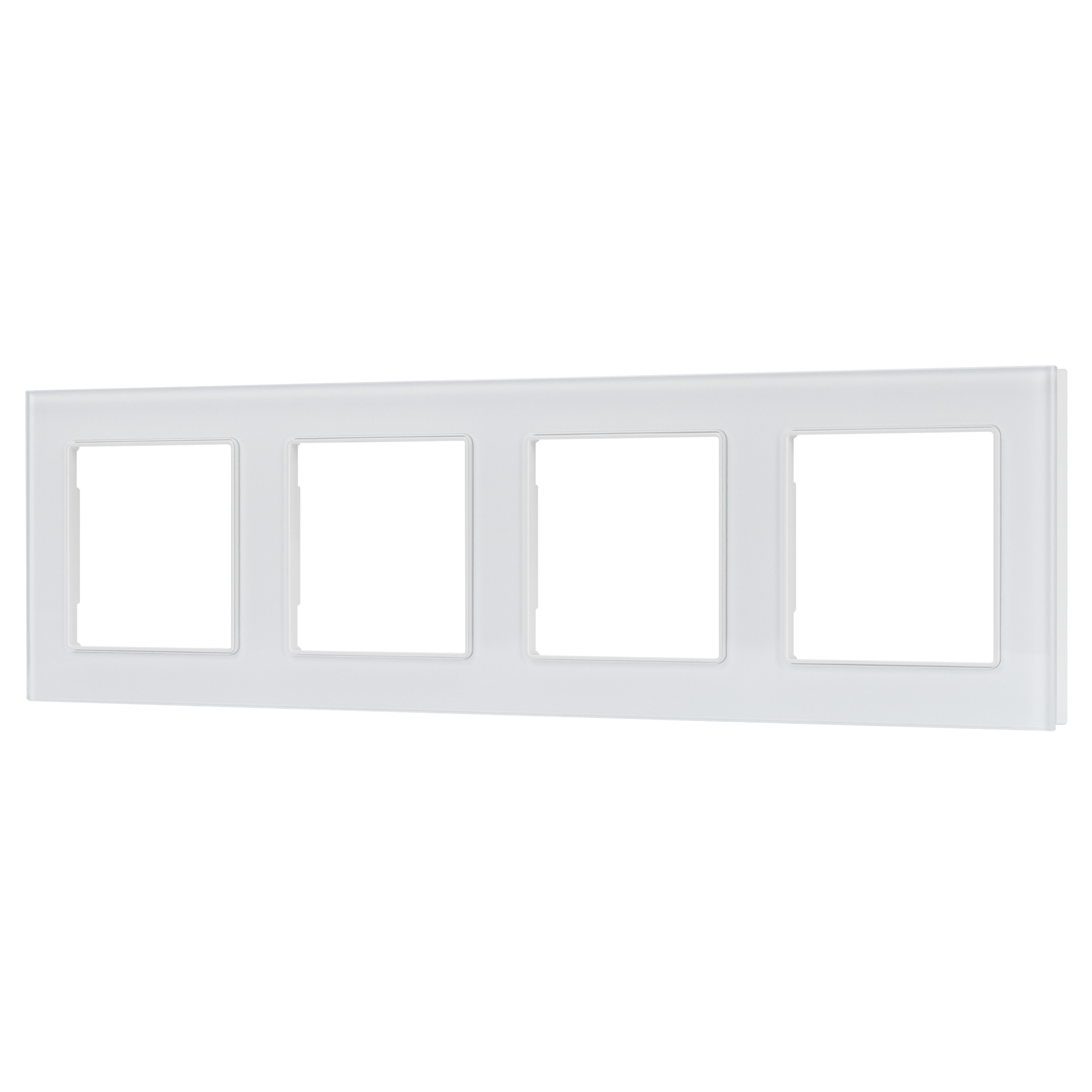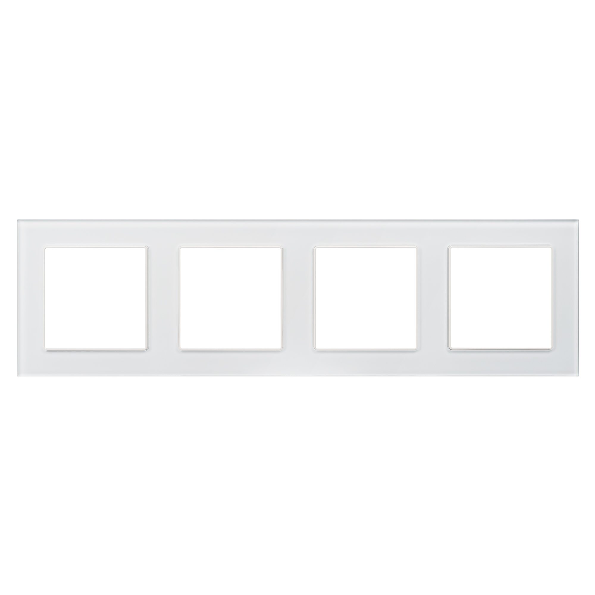 Рамка стеклянная на 4 поста, под встраиваемый механизм (квадрат). Цвет - белый. Ориентации монтажа - горизонтальная.