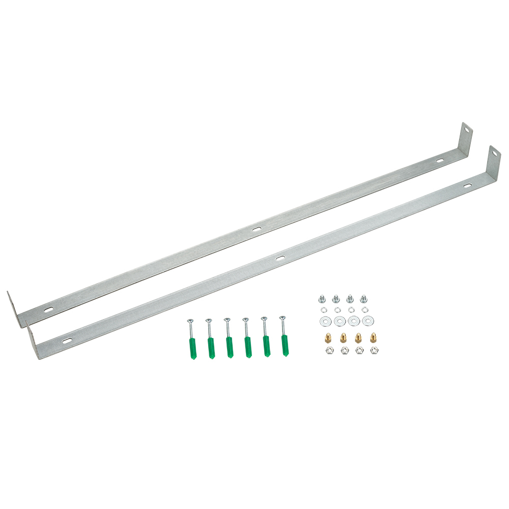 Скобы для накладного монтажа панелей серии DL-B600x600. В комплекте: 2 скобы, 6 дюбелей, 6 шурупов, 4 винта, 4 гайки, 4 гровер-шайбы, 4 стойки резьбовых.