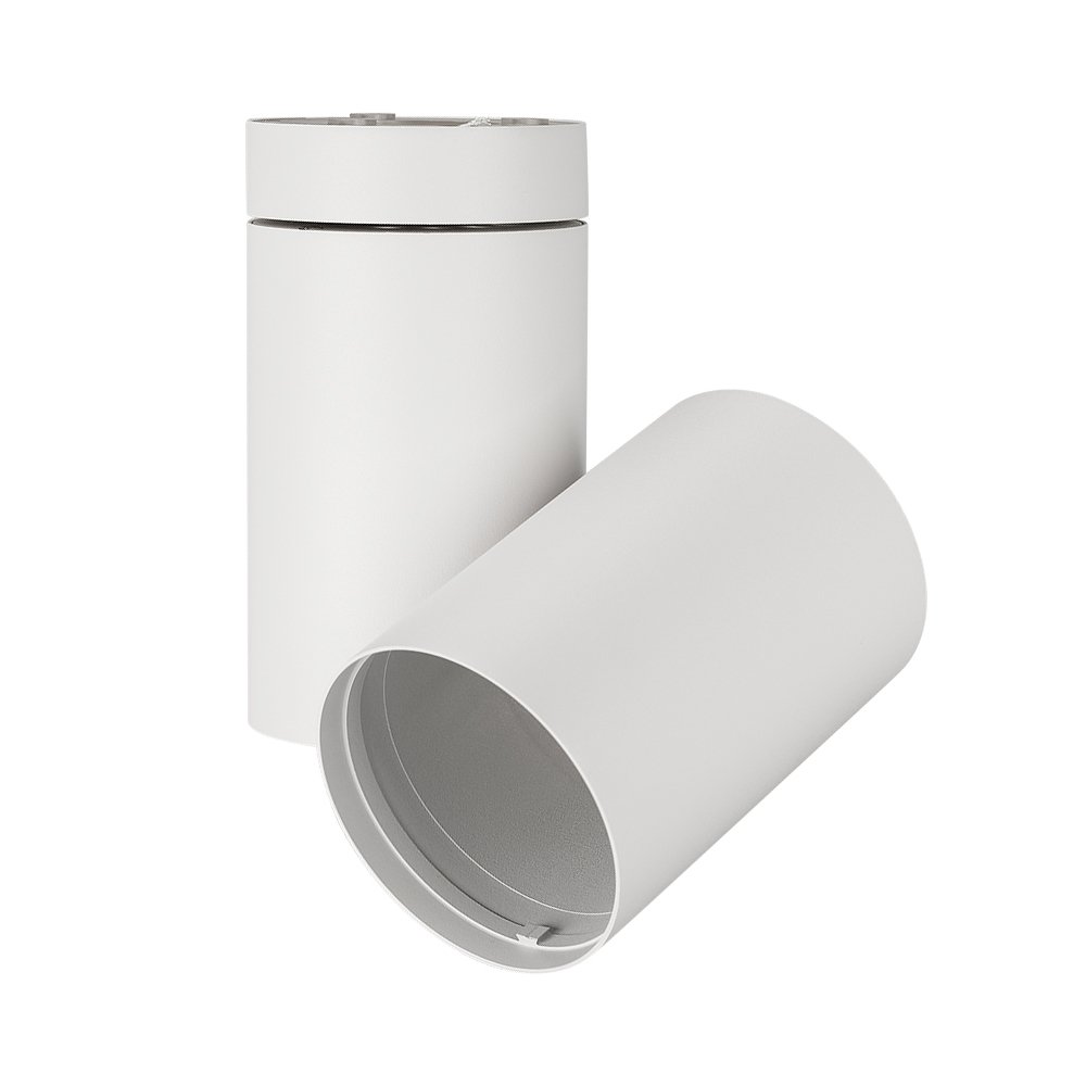 Корпус накладной поворотный для светильника POLO-R85 (1 часть из 3). Материал корпуса белый алюминий. Размер DxLxL1xW Ø85×124×150×175мм, встроенный драйвер PRI:220-240VAC, SEC:DC 350mA 30-43V, 15Вт.