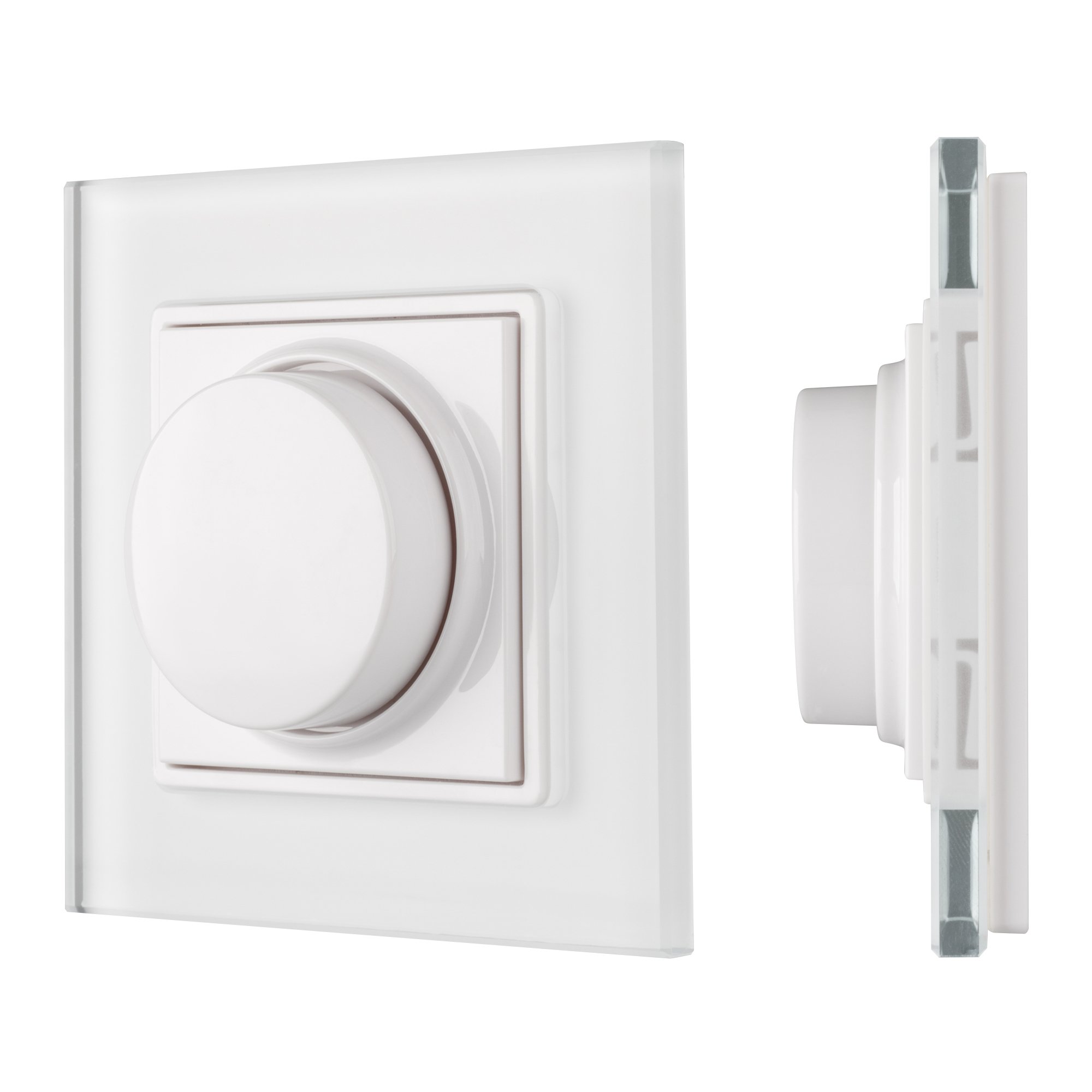 Накладная роторная панель белого цвета для управления MIX-контроллерами серий SR, Excellent. Позволяет осуществлять включение/выключение источников света, реуглировку их яркости, управление цветовой температурой. Питание панели осуществляется от 3В батарейки CR2430. Габариты составляют 86x86x27 мм, корпус белого цвета, лицевая часть рамки панели - стекло. Изделие совместимо с рамками мировых производителей, в том числе, GIRA S-55, E2, Event, Esprit.